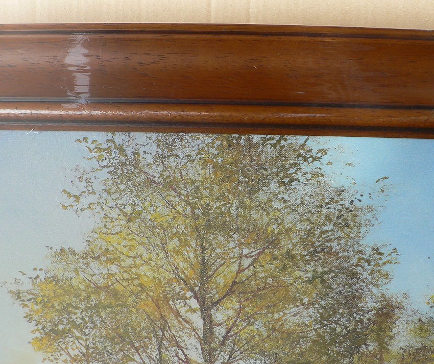 Obrazová reprodukce v dřevěném rámu.